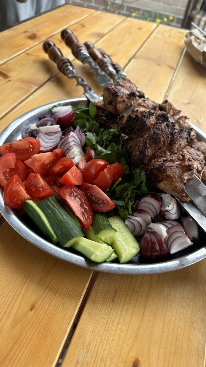 - нарезаем мясо большими кусками (в зависимости от шампуров);