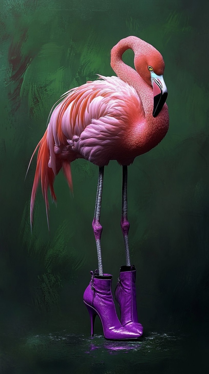 Создано на основе запроса: flamingo, anthropomorphic, purple high heels, fashion, model