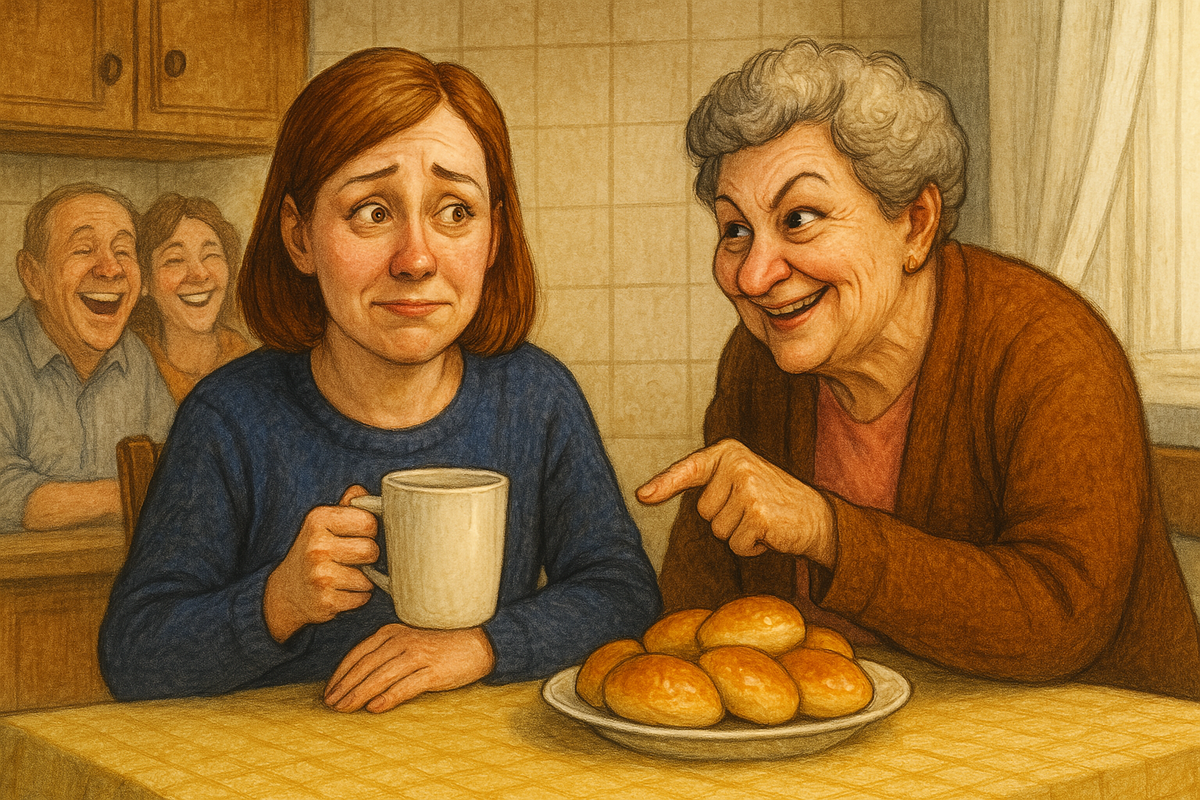 Знаешь, что самое обидное? Не когда кто-то откровенно хамит — тут всё ясно, можно в лоб зарядить (словом, конечно). А когда улыбаются, наливают тебе чай — и между пирожком и тостом вдруг такое ляпнут, что хоть тарелкой прикрывайся.