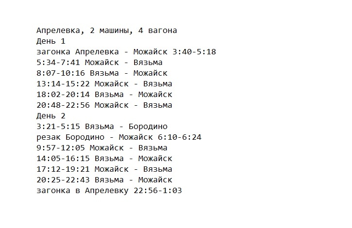 Таким образом апрелевские выходы на маршрут Можайск - Вязьма теперь выглядят вот так: