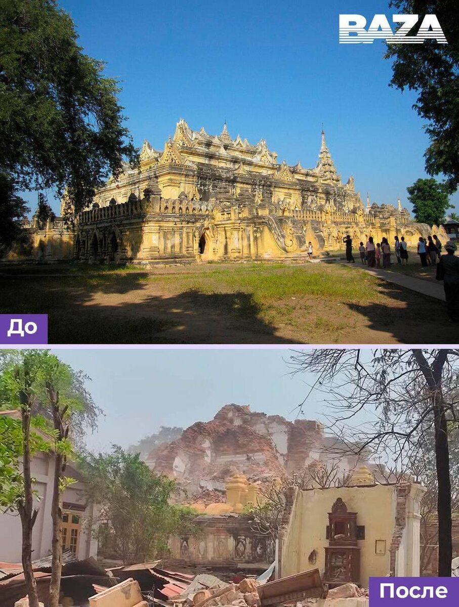 В ответ на пост 🔥 Мощное землетрясение в Юго-Восточной Азии разрушило объекты мирового культурного наследия, пишет Baza. Древние монастыри и пагоды в Мьянме обратились в руины, разрушены дороги и мосты. Интернет-издание также привело небольшой список пострадавших достопримечательностей: ▪️Монастырь Me Nu Brick; ▪️Мост Ava Bridge; ▪️Храм Будды Махамуни в Мандалае; ▪️Пагода Синбьюме в Мингуне; ▪️Королевский дворец в Мандалае. Сильнейшее землетрясение магнитудой 7,7 и 6,4 охватило не только Мьянму, но и соседние страны, включая Таиланд, Китай, Бангладеш и Индию. В результате катаклизма погибло как минимум 1644 человека, 3408 получили ранения, а 139 считаются пропавшими без вести. Ранее не было известно о масштабах разрушений, но теперь понятно, что катастрофа затронула культурные и исторические объекты. Службы экстренной помощи и спасатели продолжают работать на местах, пытаясь предоставить помощь пострадавшим и оценить ущерб.
