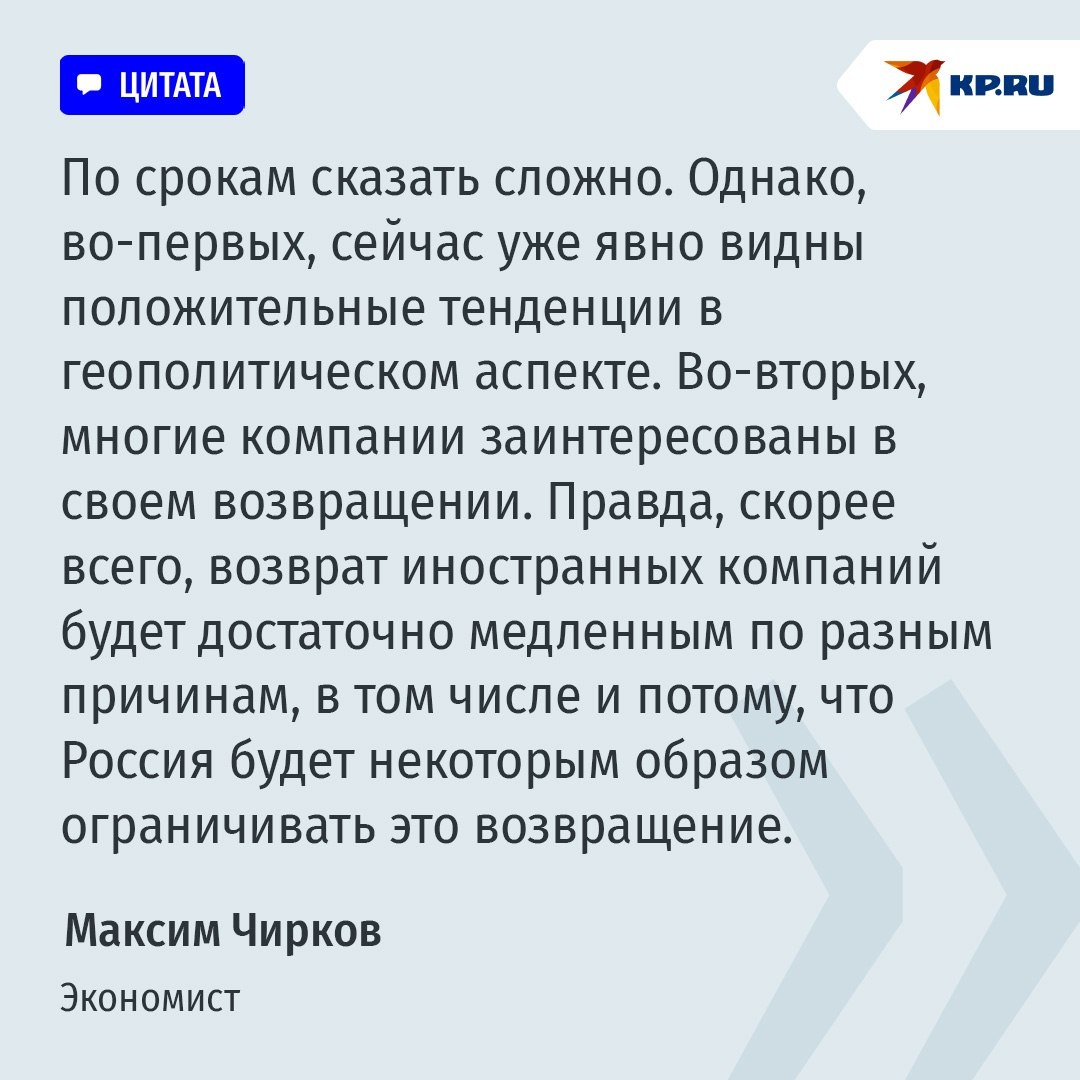 Экономист Максим Чирков полагает, что возврат разных западных компаний вполне реалистичен, и, более того, гарантирован.