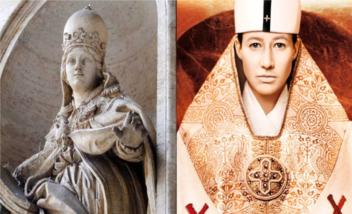 Шел 857 год, и обеспокоенные жители Рима стали искать поддержку у Папы Иоанна VIII, которого они успели полюбить за два года его пребывания на римской кафедре. Однажды множество людей вышли приветствовать папу, шествовавшего во главе процессии, направлявшейся из собора Св. Петра к папской резиденции в Латеранском дворце. когда участники процессии вошли в узкий проход между Колизеем и церковью Св. Климента, святой отец споткнулся и упал. И тут же на глазах перепуганных зрителей Папа Иоанн вдруг превратился в роженицу. Но едва ребёнок появился на свет, ка благочестивые богомольцы мгновенно обратились в разъярённую толпу. Несчастную женщину и её младенца схватили, выволокли за городские ворота и забили камнями до смерти. Вот такую историю рассказывали по крайней мере с конца ХIII века, и вера в неё сохранялась ещё на протяжении многих столетий.