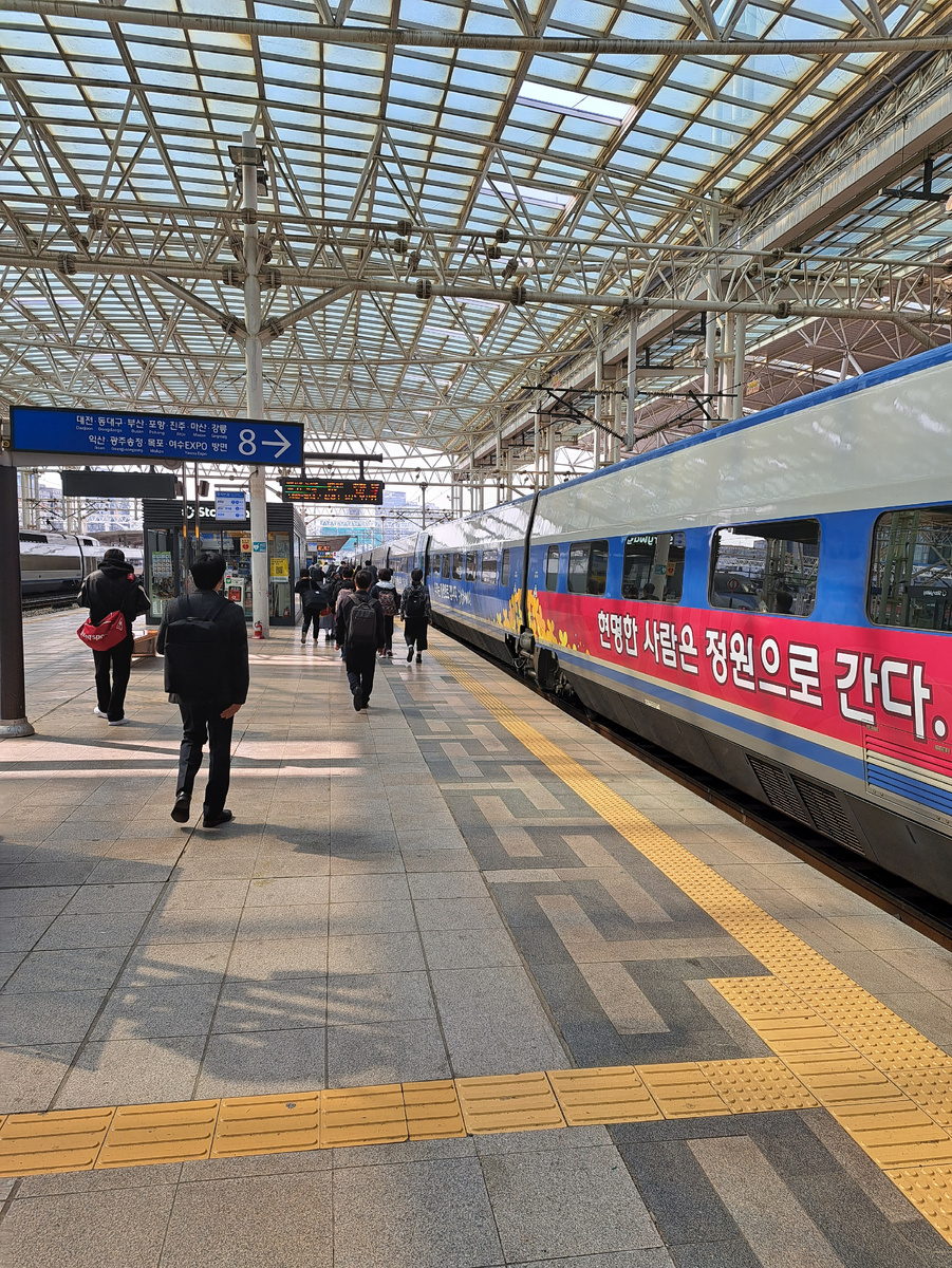 Пусан — второй по величине город Кореи и морская столица страны. Здесь не просто живут — тут буквально «дышат» морем! Город располагается на юго-востоке полуострова, между горами и реками, где не найти места для скучных прямых улиц. Если Сеул — это сердце, то Пусан — его душа, всегда готовая к путешествиям и приключениям! День 5. Дорога в Пусан и пляж Сели в поезд - Super Rapid Train - из Сеула в Пусан (2,5 часа и 45$). Зомби (аллилуйя) в этот раз не было, а были шикарные виды и веселые попутчики! Метро Пусан Прогулялись пешком до K-Guesthouse Premium Nampo 1 (166 $/ 2 номера/ 2 ночи). Зачекинились, оставили вещи и пошли гулять. Сели в трамвай, который идет вдоль береговой линии, и доехали до Cheongsapo-ro День 6. Камчхон, башня, музей иллюзий и рынок Чагальчхи Культурная деревня Камчхон — это яркий пример того, как из бедного квартала может вырасти арт-приключение! Основана в 1950 году последователями религии тхэгыкто и беженцами, она долгое время была неблагоустроенным местом. Но