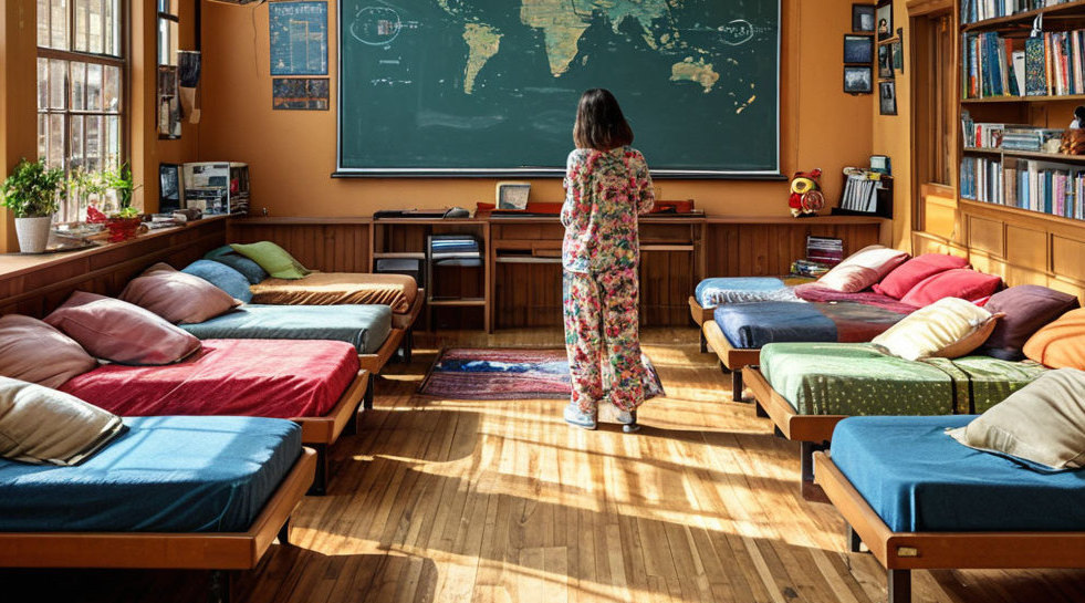 Мне приснился экзамен. Вот только школа была необычной. В одной большой комнате было полностью темно и ученики крепко спали, ожидая своей очереди отвечать. Во второй комнате было светло, стоял учительский стол, а вместо парт - тоже кровати, но спать уже было необязательно. Я была в первой комнате, где невыносимо валило с ног, но знала, что отдохнуть можно лишь до того момента, пока меня позовут, а это будет скоро. Я ведь, как и в нормальной школе - первая по списку.