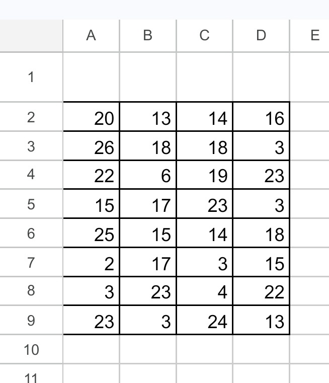 Предположим есть таблица с данными и надо их записать в один столбец. Допустим это тираж лотереи и надо посчитать какие числа выпадали чаще. Данных может быть гораздо больше, это в данном случае не принципиально. На рисунке числами заполнены столбцы A, B, C, D. Выделим свободную ячейку, например, F2 (см. рисунок ниже) и запишем формулу: =ARRAYFORMULA({FILTER(A:A;A:A>0);FILTER(B:B;B:B>0);FILTER(C:C;C:C>0);FILTER(D:D;D:D>0)}). Формула содержит четыре (по количеству столбцов, которые надо объединить в один) функций типа FILTER(A:A;A:A>0). Эта функция возвращает числа (в виде массива данных) из столбца А по условию, что число в ячейке больше нуля (условие может быть другим), таким образом пустые ячейки не попадают. Далее к этому массиву чисел надо присоединить массив чисел из столбца В, затем С и тд., поэтому эти четыре функции взяты в фигурные скобки, которые передаются как аргумент для функции ARRAYFORMULA. В итоге функция ARRAYFORMULA записывает весь массив чисел в один столбец. Далее