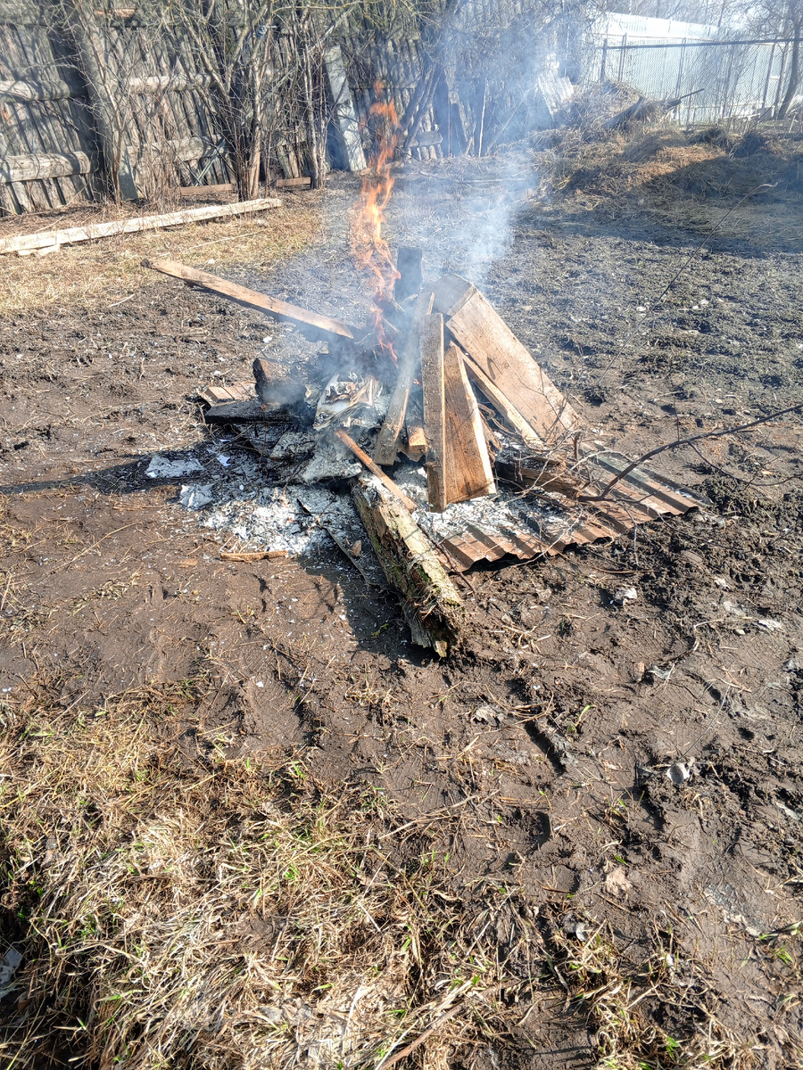 Всем привет мои дорогие подписчики и гости моего канала. Суббота вроде выходной, а к вечеру даже сил нет. Утро у меня началось как обычно накормила всех животных и птиц. Ну и конечно пошла делать дела. Пока утром было прохладно, решила поделать дела дома. Погладила белье, давно собиралась. Но тут пришли в гости мои родители. Немного посидели, мама уехала, а папа остался. На улице погода сегодня прямо радовала, тепло плюс 14 и солнце припекала, не скажешь что еще март, погода была как в мае. Мы с ним решили сжечь мусор. Принесла лист железа и на нем стали разжигать. Решила начать у забора разгребать, там много веток было Весь этот мусор пошел в костер Пока жгли мусор решила понемногу растаскивать кучу сена от коз под деревья и кусты, а чтоб разнообразить и навозную кучу перекидывать ближе к сделанной . Потихоньку дело идет, половину перекидала. Время еще есть до конца не перекидать, а тут потом перепахать землю и посадить можно тыкву и кабачки. Немного сена под деревья натаскала. И ту