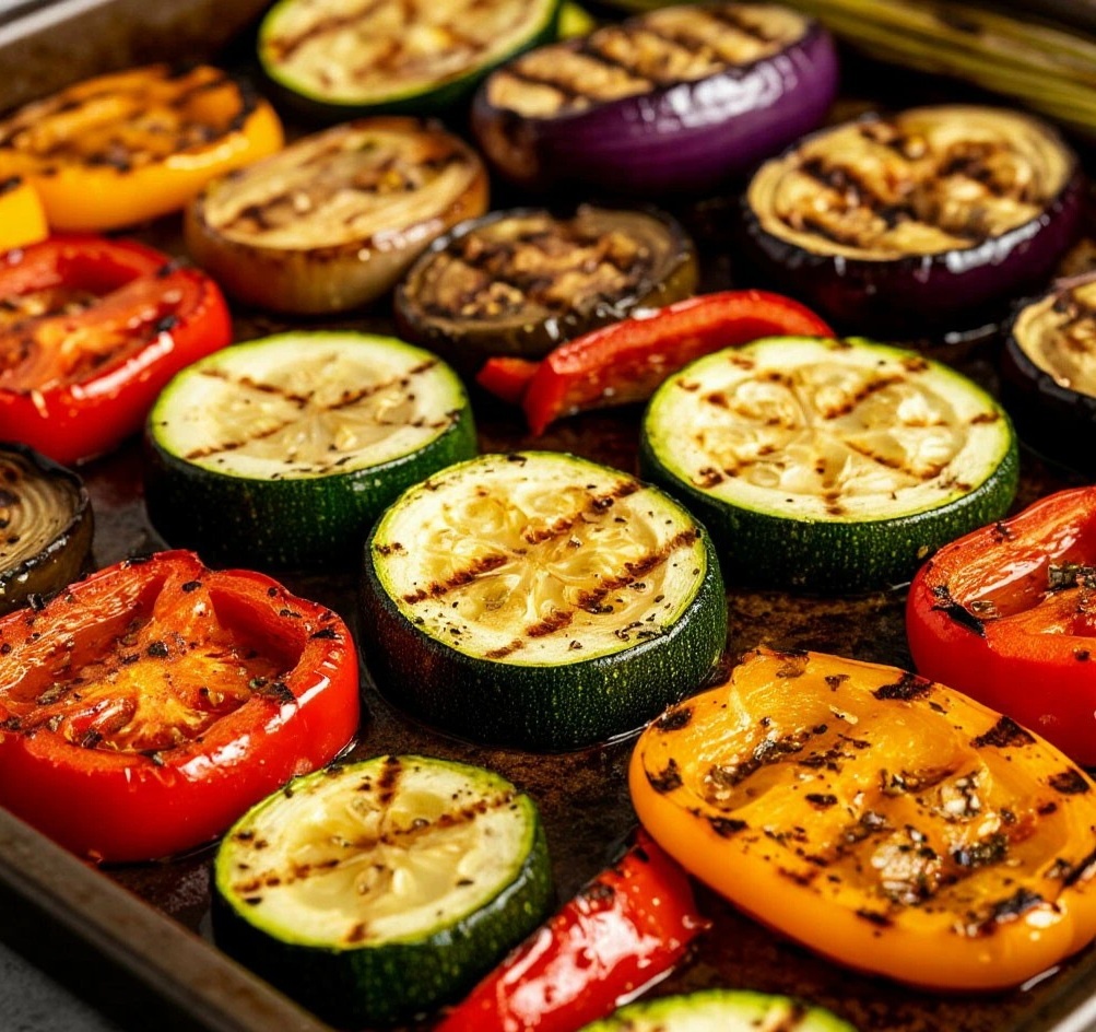 Не у всех есть духовка, но это не повод отказываться от вкусных овощных блюд! В этой статье представлены простые и аппетитные рецепты запеченных овощей и овощей на сковороде-гриле. Легко и быстро можно приготовить яркие и полезные блюда, которые удивят вас и ваших близких. Готовы порадовать себя новыми кулинарными идеями? Давайте начнем! - Все овощи промываем и нарезаем кольцами толщиной 1 см. Болгарский перец можно нарезать на 4 части и убрать внутренности. - В отдельной ёмкости смешиваем масло, соевый соус, натертый чеснок, листочки чабреца и розмарина. Хорошо перемешиваем. - В эту ёмкость кладём нарезанные овощи и тщательно перемешиваем. Оставляем мариноваться на 10 минут. - Разогреваем сковороду-гриль на сильном огне без масла. - Выкладываем овощи по одному слою и обжариваем по 30 секунд с каждой стороны. Затем выкладываем их на противень. - Ставим противень в разогретую до 180°С духовку на 8-10 минут. Можно посыпать остатками чабреца и розмарина. - Нарезаем овощи кольцами толщиной