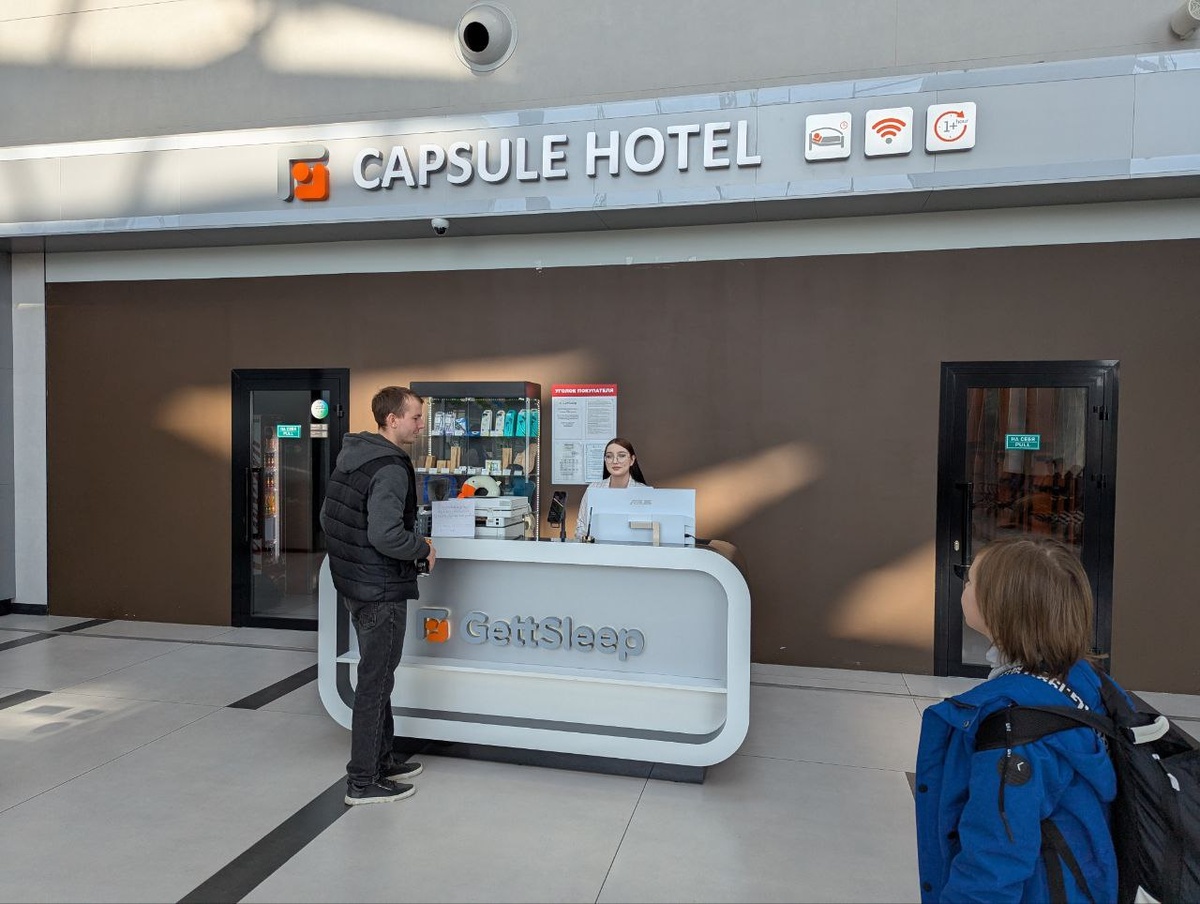 СПб 2025. По указателям. На глаза попался указатель, который заинтересовал нашу компанию двигаться по направлению стрелок. На нём красовалась надпись "Капсульный отель 150м" Видели только в кино. Поэтому не стали упускать возможность заглянуть, как там все устроено. Администратор вежливо пошла нам навстречу и показала, как выглядят номера. VIP номера поинтереснее. Шире. Есть подобие уюта. Столик, зеркало, лампа. В обычных номерах только постель. Не стала уточнять цену, пусть это останется загадкой. Но и там и там были задвинутые шторы и рядом стояла обувь. Кто-то отдыхал.