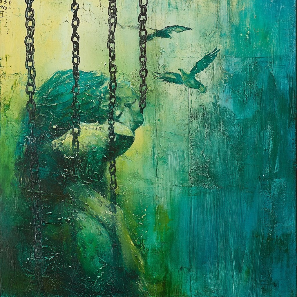 Создано на основе запроса: the broken chains of the soul, relieve, freedom, painting