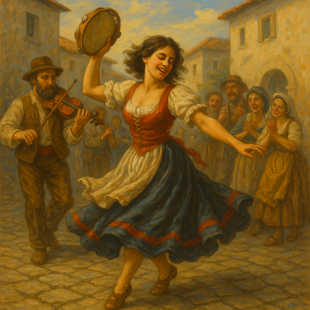 Есть такие места на земле, где кажется, будто само время дышит медленно и с любовью. Там звуки праздников переплетаются с запахами оливы и хлеба, а древние обычаи живут не в музеях, а в танцах, песнях и людях. Одно из таких мест — Апулия, край на юге Италии. Я узнала о нём не из путеводителей, а через человека — Маргариту, с которой мы вместе танцевали тарантеллу в одном из залов Берлина. Я познакомилась с Маргаритой в одном из уютных танцевальных залов берлинского района Шпандау. Она сразу же привлекла внимание темпераментом и яркой улыбкой. Когда Маргарита начала учить нас танцевать тарантеллу, то, казалось, сама музыка наполняла её движения жизнью. Она виртуозно обращалась с тамбурином, звонко постукивая им в ритм быстрых мелодий, и с каждым звуком передавала нам искреннюю любовь к древним традициям. В перерывах между отработкой танцевальных шагов Маргарита рассказывала об Апулии – своём родном крае на юге Италии, о его обычаях, пастухах, спускающихся с гор под Рождество, и о музыке