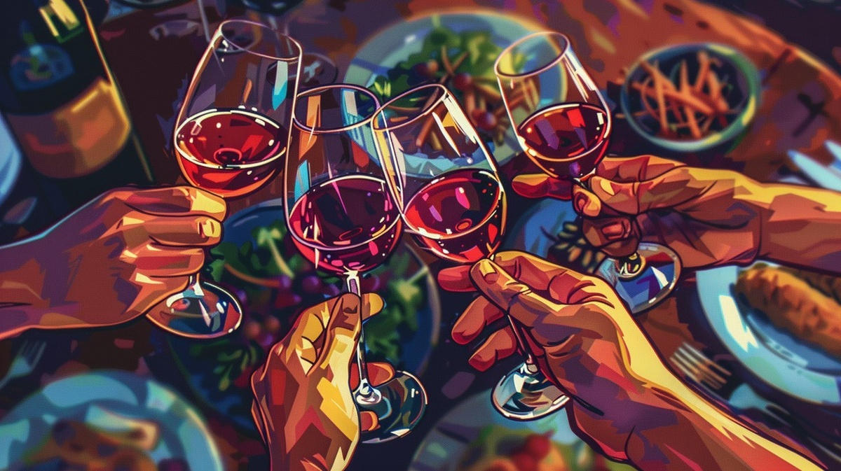 Создано на основе запроса: cool artistic graphic for a cover of a Facebook Group for friends who plan cool things like movies, wine and food together