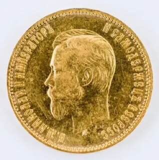 Золотые монеты Николая II — это монеты Российской империи, которые чеканились в период правления последнего императора Всероссийского Николая II. Чеканка продолжалась и в советский период, с 1923 по 1926 годы. Монеты изготавливались из золота 900 пробы. Монеты Николая II включают: ● Золотые монеты регулярного чекана 1895 года: полуимпериал (5 рублей золотом) и империал (10 рублей золотом). ● Золотые монеты регулярного чекана, предназначенные для обращения, с 1897 года: 5 рублей, 7 рублей 50 копеек, 10 рублей, 15 рублей. ● Золотые монеты, чеканенные для Финляндии на Гельсингфорсском монетном дворе: 10 марок, 20 марок. ● Памятные и золотые донативные монеты, использовавшиеся в качестве подарков: 37 рублей 50 копеек — 100 франков, 2½ империала — 25 рублей золотом. ● Пробные золотые монеты: 1/3 империала — 5 русов, 2/3 империала — 10 русов, империал — 15 русов, 5 рублей 1896 года, 10 рублей 1896 года, 15 рублей 1897 года, пробная. В 2019 году в России был выпущен каталог золотых моне