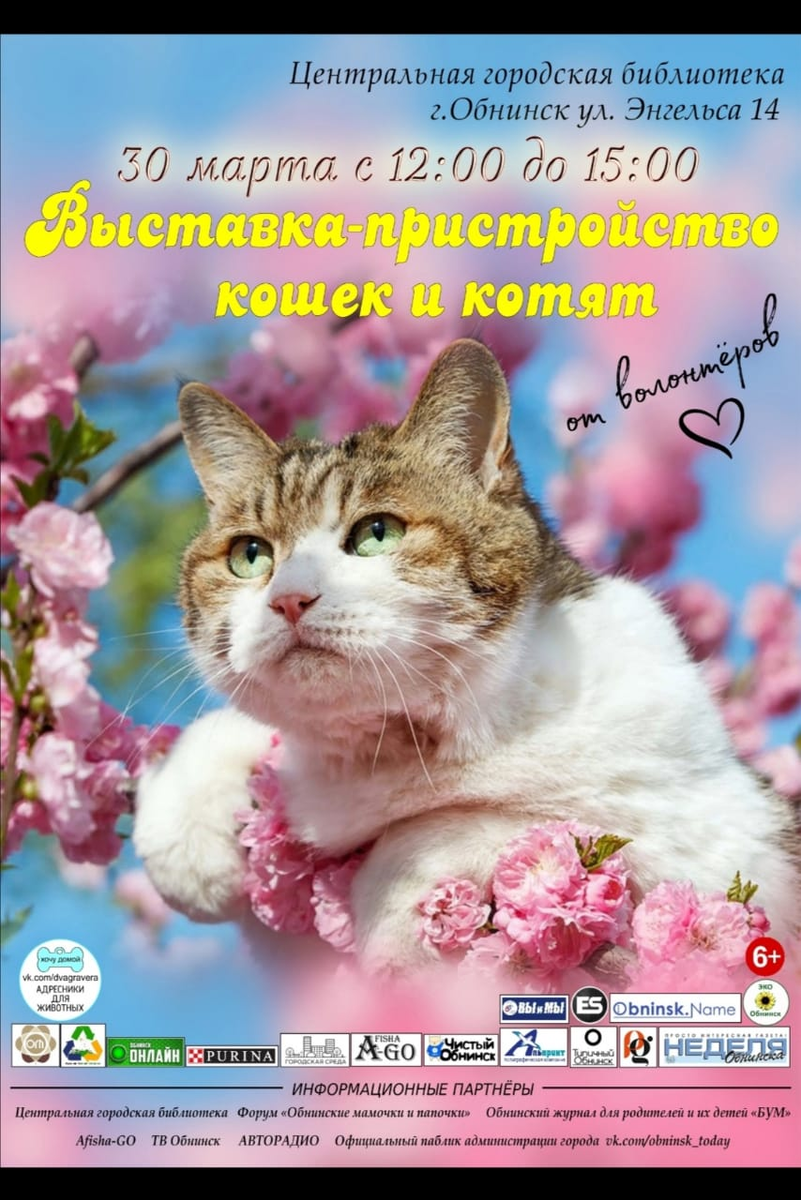 📅 30 марта с 12:00 до 15:00 пройдёт выставка-пристройка кошек! 🚩 Место проведения: Центральная городская библиотека, г. Обнинск, ул. Энгельса, 14 Приходите и выбирайте себе нового любимца 🐱 ❗ Кроме того, все желающие смогут подписать письмо в администрацию области, об отмене закона по уничтожению бездомных животных.