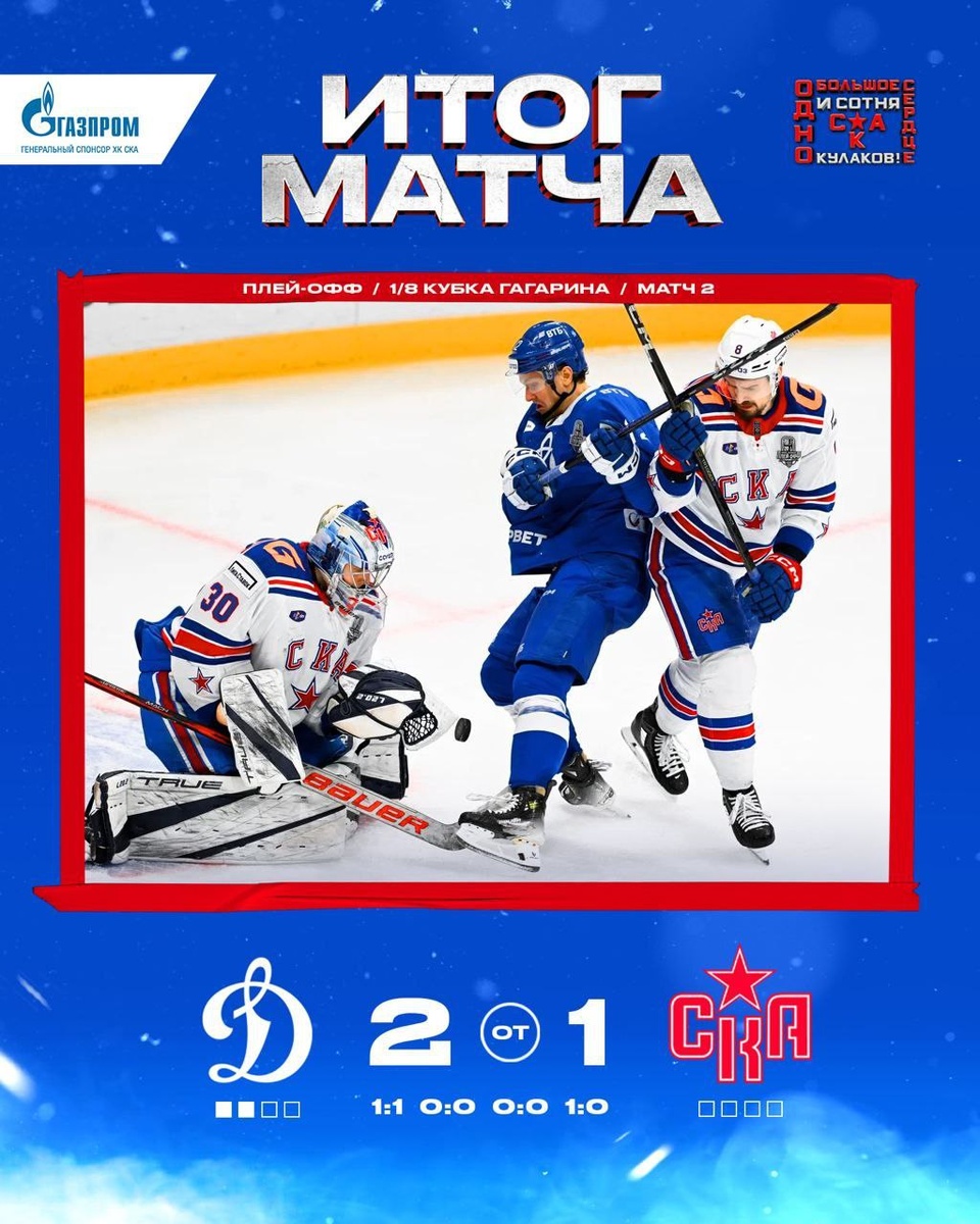СКА проиграл в овертайме «Динамо» Играли хорошо, но опять бывший игрок армейцев Никита Гусев похоронил надежды на победу. Счет в серии 0:2. Играют до четырёх побед. Следующий матч будет в Петербурге. Шанс еще есть. Подпишись на Комсомольскую правду: СПб — отдай свой буст нам