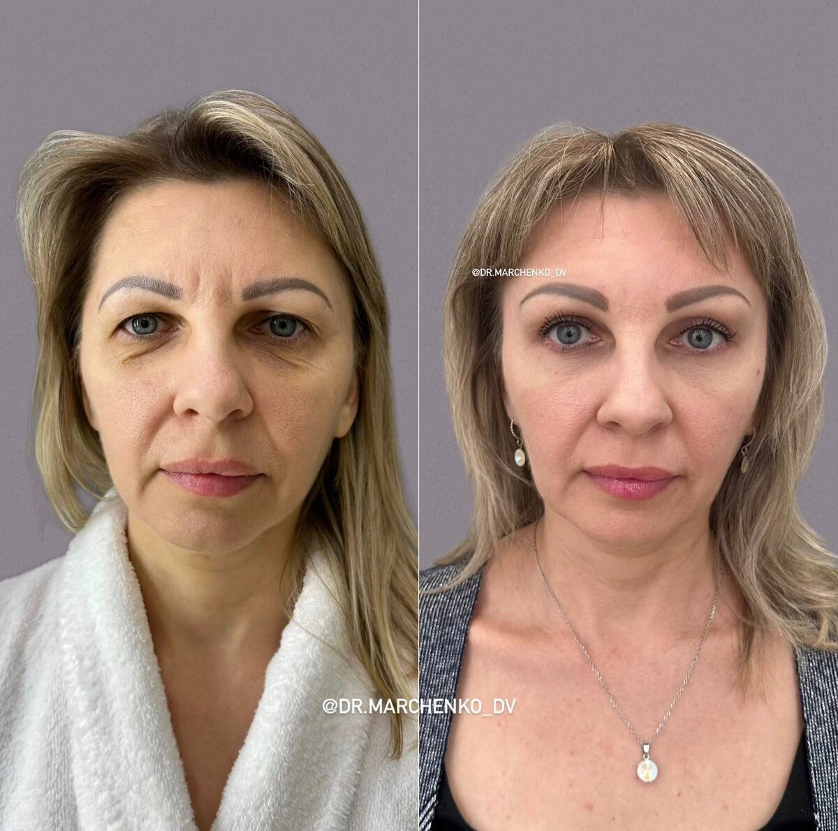 1,5 месяца после эндоскопического фронто-темпорального (лобно-височного) лифтинга, пластики верхних и нижних век.