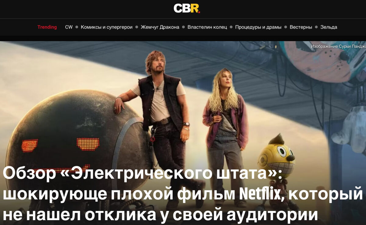 То же самое можно сказать про «Электрический штат» от Netflix, который получился неоднозначным. С одной стороны — электрический, с другой — от Netflix. Первым на амбразуру испепеляющей критики бросается сомнительный каст. Все актеры молодцы, но нужны ли именно они этому фильму? Крис Пратт после нескольких фантастических проходняков, кажется, порастерял шутовскую удаль да и до брутализма своего звездного тестя тоже не дотягивает. Ладно, стоит отдать должное — Стэнли Туччи, Джанкарло Эспозито, Вуди Харрельсон и Энтони Маки просто бесподобны, но в русском озвучании мы этого не поймем. Алан Тьюдик в роли очередного странного существа, как всегда, гениален. Милли Бобби Браун играет девочку, которая ищет своего брата, чтобы его убить. Лучше бы они взяли на эту роль кого-то неизвестного или, наоборот, очень известного. Но вот этот промежуточный вариант делает весь фильм каким-то… промежуточным, автоматически одноразовым. Хотя, снимаю шляпу — справилась она на пятерочку. А, стоп! Шляпу у нас