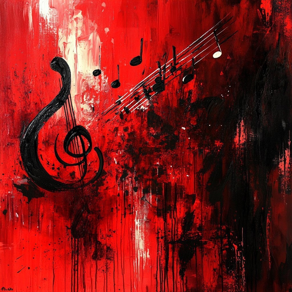 Создано на основе запроса: Please createn an image with music in red and black color