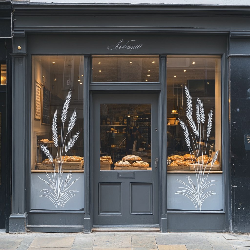 Создано на основе запроса: drawed wheats on an entrance of a bakery shop with grey font