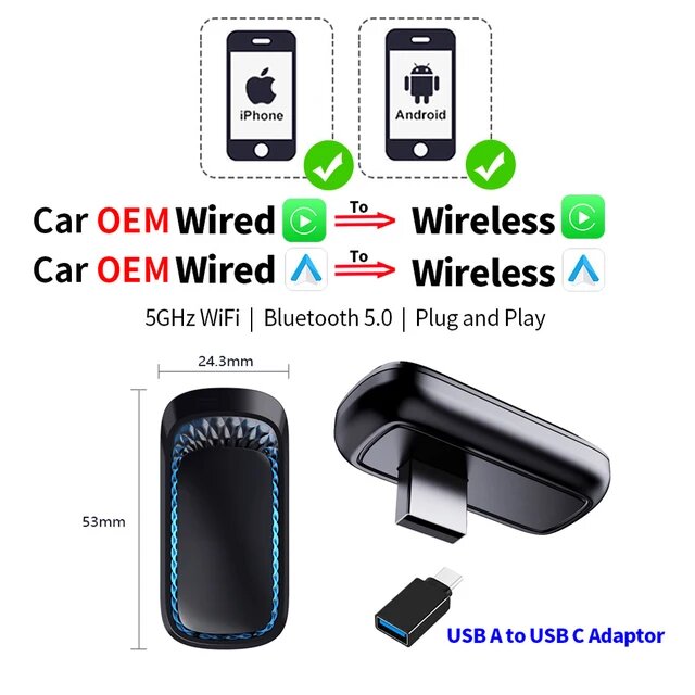 - Type: 2-in-1 Wireless Apple Carplay & Android Auto