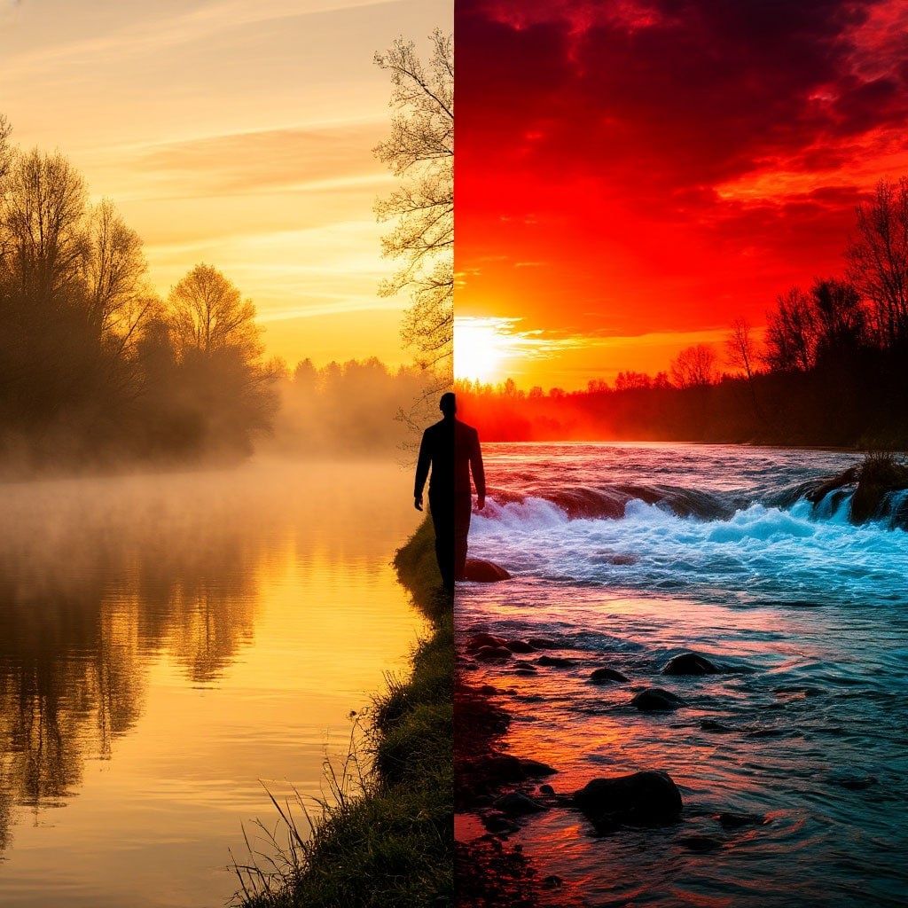 Представьте, что вы стоите на берегу реки. Утро окутано туманом, воздух наполнен тишиной, а вода неспешно несет свои потоки. Это первая половина дня – под влиянием Луны в Рыбах и накшатры Ревати. Здесь царят мечты, интуиция, глубокие размышления. Время замедляется, позволяя вам почувствовать, что значит истинное принятие.