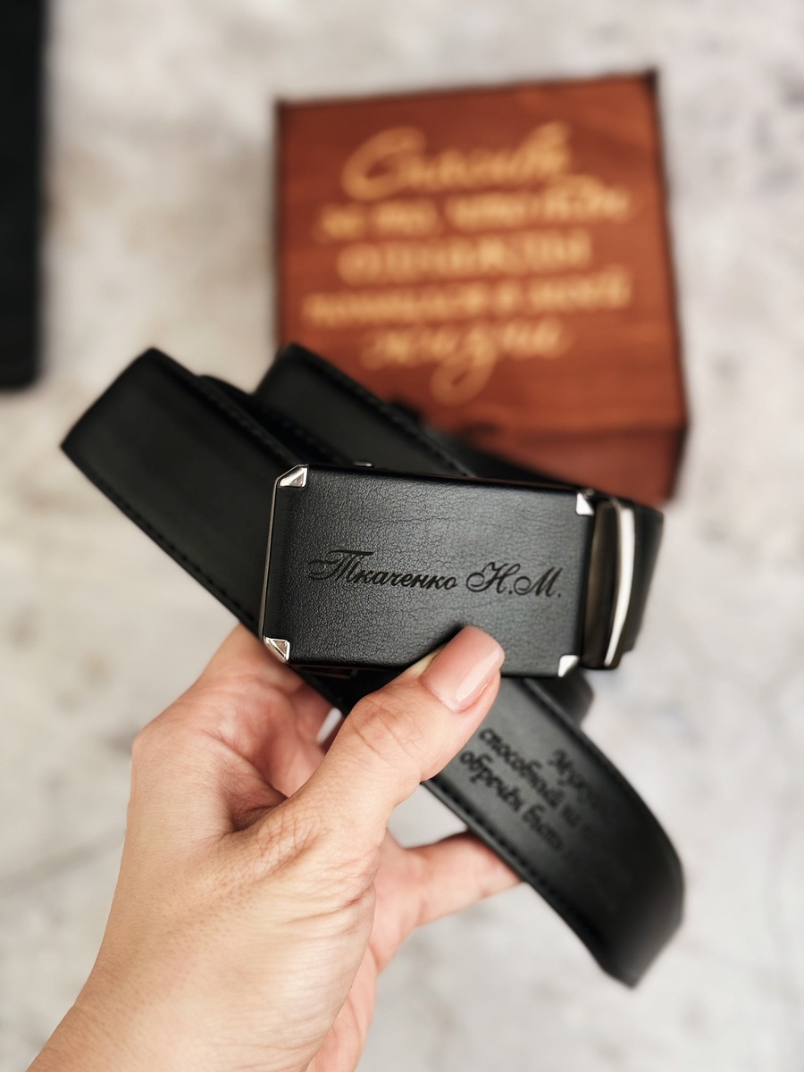 🌟 Друзья, у нас для вас шикарная новинка! Теперь у нас есть ремень с кожаной пряжкой, который не просто держит ваши штаны на месте, но и добавляет изюминку в ваш образ. Гравировка на пряжке и самом полотне ремня не только делает ремень уникальным, но и дает возможность добавить немного трогательности к подарку. Например фраза , "Мужчина способный на поступки, обречен быть любимым!" 💫