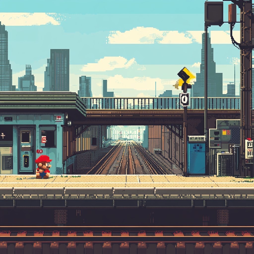 Автоперевод: 8 -битный супер -марио, похожий на работы по железнодорожным платформам и железнодорожным путям