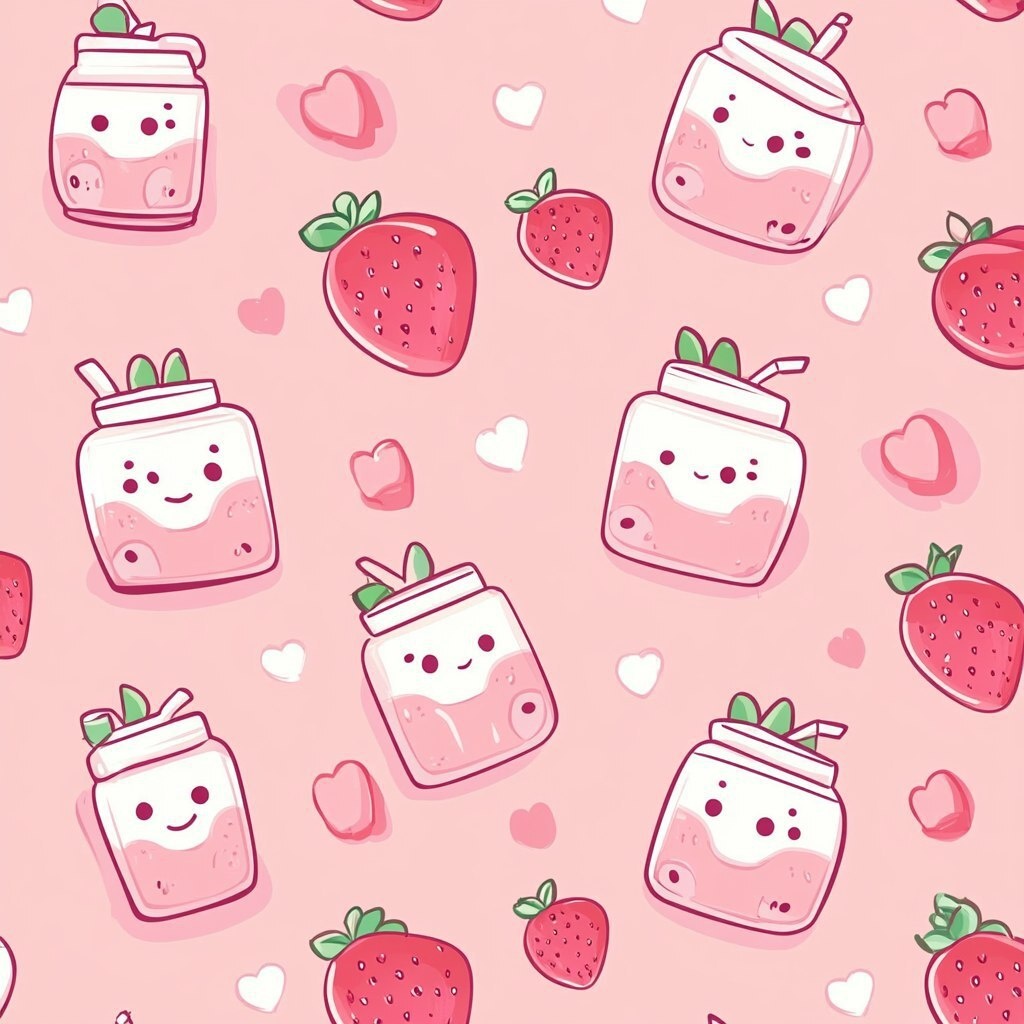 Создано на основе запроса: Create Vector kawaii Cute strawberry milk kawaii seamless pattern background
