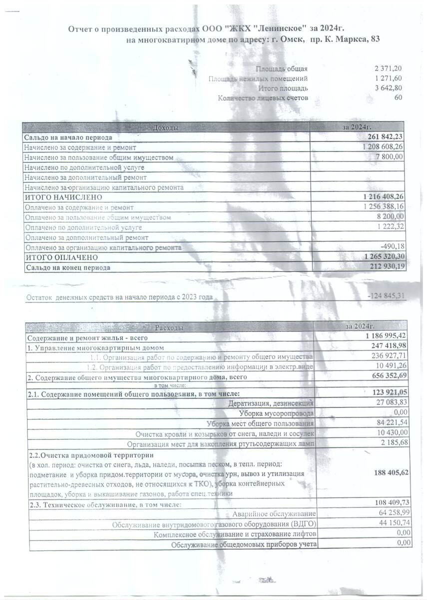 Кто их составлял сам поняли что написали. Первый отчет в этом году нам прислали жители МКД 83 по Маркса И целая куча вопросов: 1. ПОЧЕМУ начислено 1216408,26руб., а оплачено 1256388,16руб.? 2. Что за оплата "за организацию кап.рем" -490,18руб. ??? . 3. Остаток -124845,31руб. тут понятно - должники. 4. Управление МКД 247418,98руб. -УК взяла свои деньги в полном объеме и это при том что на доме должники и в договоре и протоколе нет упоминания о том что УК имеет право перебрасывать денежные средства между статьями расходов. 5. п. 2.3 Те