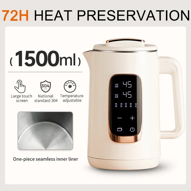 1. ⭐ Интеллектуальный чайник 1.5л, 1000Вт, сталь 304