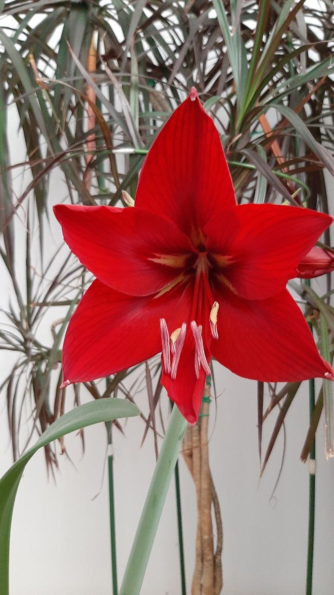 Вот такое вот чудо природы выросло в квартире весной: Гиппеаструм, или «амариллис» — луковичное растение семейства амариллисовых, родом из тропиков Южной Америки. Его крупные цветки, напоминающие лилии, собраны на высоком цветоносе с отогнутыми лепестками в два ряда. Окрас варьируется от белого до пунцово-красного и ярко-розового. Листья длинные, узкие, образуют пышную розетку. Цветение при правильном уходе обильное, но требует периода покоя. Популярен как комнатная культура благодаря эффектному виду и относительной неприхотливости. Иногда путают с лилией, но гиппеаструм относится к другому семейству. Гиппеаструм светолюбив, но плохо переносит прямые солнечные лучи в жаркие часы. Оптимальное расположение — южные, восточные или западные подоконники с рассеянным светом. Летом растение можно выносить в сад или на балкон, защищая от дождей. Растение теплолюбиво: комфортная температура для роста — +20…+25°C. Резкие перепады и сквозняки могут вызвать гибель бутонов или листьев. Полив умерен