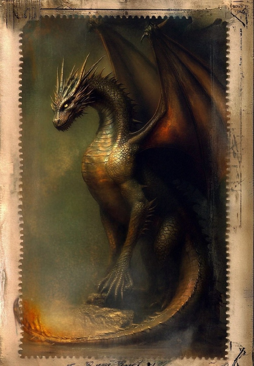 Создано на основе запроса: philately, on a postage stamp with perforated castleated edges, Kirlian field-effects, dramatic full length photograph of the beautiful winged dragon, enigmatic, piercing eyes with a quizzical expression, liquid metallic armor, slender physique, dynamic pose