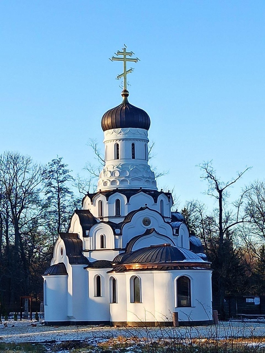 По дороге ведущей вниз к заливу, как из дивной морской раковины, виднеется жемчужина. Это белоснежный храм с переливающимся темным куполом и величественным крестом. Чистый белый цвет, как олицетворение скромности, смирения и тишины. Все место дышит смирением. В воздухе звенит тишина. Дух человека просыпается из спячки и начинает ликовать, настолько особенное это место. Весной, зимой, летом или осенью душа там отдыхает и наполняется святостью. Чистые и хрупкие линии храма заставляют задуматься о хрупкости самой жизни. «Место радости», так называется парковый комплекс, куда входит храм. Знаменская Земля под Петергофом стало местом радости для царствующей семьи, здесь родились их дети, здесь они провели лучшие свои годы. Три дочери и царевич Алексей родились на Нижней даче недалеко от Финского залива на территории парка Александрия. Место особенное, тихое. И радость там тихая. Недалеко от храма, часовня пророка Иоанна Предтечи. От туда, глядя на водную гладь, время может остан