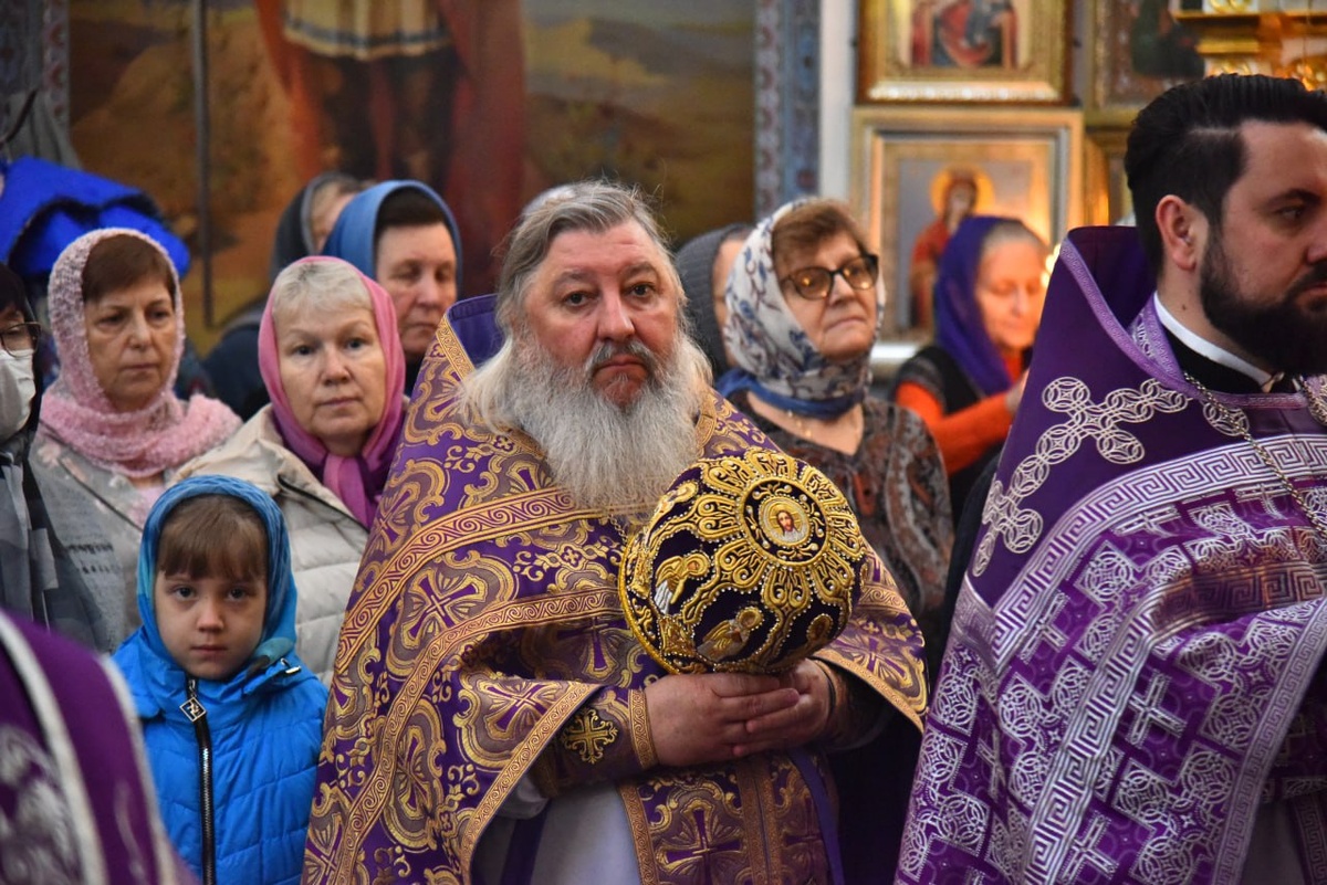 Его Высокопреосвященству сослужили настоятель храма протоиерей Алексий Асеев, духовник епархии протоиерей Анатолий Семенюк, секретарь епархии иерей Вадим Татусь, иерей Серафим Асеев, благочинный Казанского и Иоанно-Предтеченского округов иерей Константин Крымов, иерей Илия Степанов, диакон Георгий Качанкин.