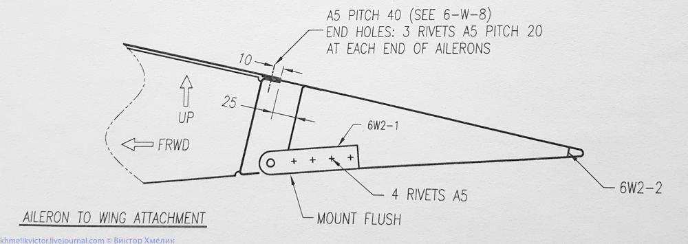 Один из наиболее часто задаваемых вопросов о конструкции низкопланов ZODIAC: отсутствие шарниров в навеске элеронов. Простые нещелевые элероны на этих самолетах в качестве шарнира используют верхнюю обшивку крыла. Далее Крис Хайнц кратко объясняет причины принятия такого конструктивного решения для легкого самолета любительской постройки. В то время как обычный шарнирный узел навески элерона имеет вращающиеся части (трение, износ и необходимость смазывания), «бесшарнирный шарнир» не имеет движущихся частей, потому что отклонение обеспечивается за счет изгиба части обшивки, которая, в свою очередь, является продолжением обшивки элерона. Если ее длина имеет порядка 19-25 мм (3/4″-1″), а толщина листовой металлической обшивки из алюминиевого сплава 6061-T6 составляет 0,4 мм (0,016″), а диапазон углов отклонения элерона составляет +/- 15 градусов, мы можем, используя доступную статистику для данного типа самолетов, рассчитать усталостную прочность металла. Это примерно 120 000 часов, а, ес
