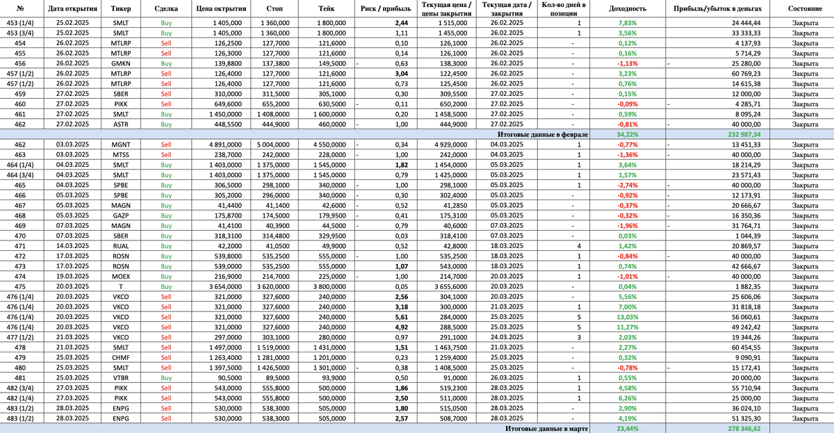 С начала недели занимал только короткие позиции после жёсткой риторики ЦБ РФ в прошлую пятницу. Во вторник на американском докладе по итогам переговоров РФ и США в Эр-Рияде, рынок вырос на 1,5% всего за 30 минут. Роботы и розничные инвесторы бросились закрывать шорты и покупать акции, что привело к резкому росту рынка.