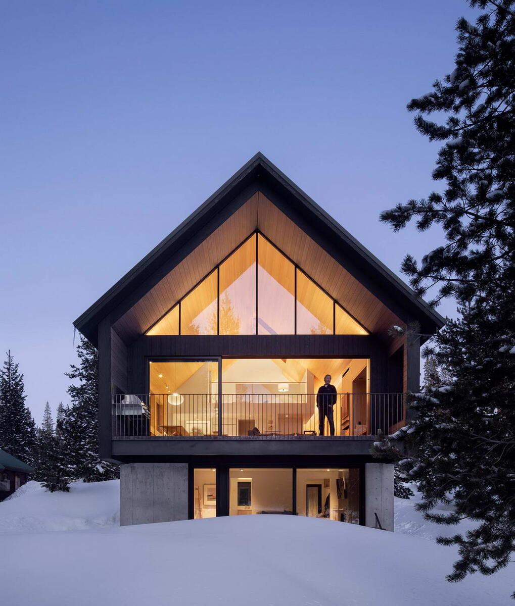 Alexander Jermyn Architecture создал дом с обшивкой из почерневшего дерева, острой крышей и окнами от пола до крыши, выходящими на озеро, как современный взгляд на альпийскую архитектуру. Бетонные стены защищают и укрепляют основание от непогоды. Верхний объём из обугленной древесины плавает над снежным покровом. Прозрачность и открытость западного фасада соединяет интерьер с дикой природой за его пределами...