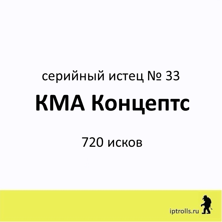 Мы собрали информацию о правообладателях, массово подающих претензии и иски в защиту авторских прав и прав на товарные знаки, а также полезные материалы и рекомендации, чтобы вы могли: Сейчас в базе более 60 серийных истцов. Вы можете проверить, не нарушаете ли вы чьи-то интеллектуальные права в рамках своего бизнеса или проекта, получить ответы на популярные вопросы и проконсультироваться. Правообладатель КМА Концептс Лимитед внесен в базу IPTrolls под № 33. Переходи в карточку правообладателя на сайте IPTrolls, чтобы узнать больше. Если вы не нашли ответ на свой вопрос, посмотрите другие материалы проекта или напишите нам через форму на сайте. _____________________ команда проекта IPTrolls 🕵🏻♂️Следите за обновлением базы