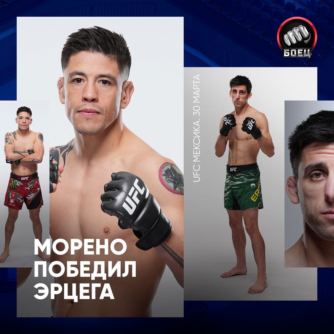 Морено победил Эрцега в главном событии UFC Мексика 👊 Бой прошел всю дистанцию в 25 минут. Судьи единогласно отдали победу Брэндону (49-46, 49-46, 49-46) ✅ Для бывшего чемпиона это вторая победа подряд и 23-я в карьере. Эрцег терпит третье поражение подряд ❌
