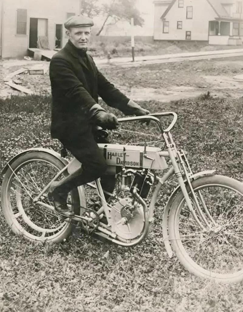 Дэвидсон Уотлер позирует на мотоцикле Harley-Davidson в 1907 году