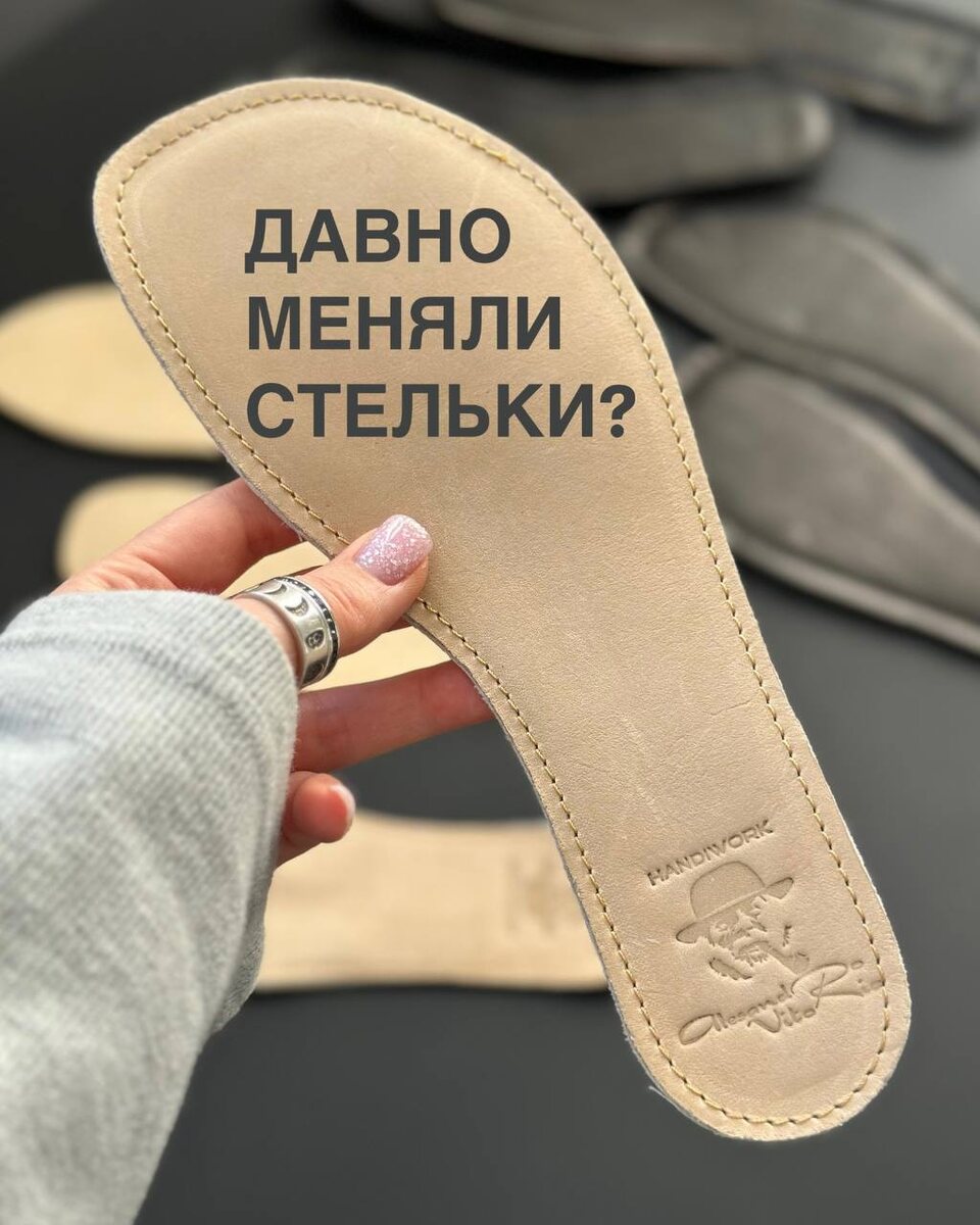 Меняешь носки каждый день… А когда последний раз менял стельки? 🧐 Стельки — это не просто аксессуар, а важная часть обуви, от которой зависит комфорт и гигиена твоих ног. По правилам их стоит менять каждые 3 месяца, но многие забывают об этом… А зря! Наши босоногие стельки: ✅ Из натуральной кожи – дышат, создают комфорт, не парят ноги. ✅ Изготовлены вручную – идеально подходят для босоногой обуви. ❌ Мы не используем свиную кожу – стельки из неё быстро впитывают влагу, и от ног появляется неприятный запах. 📌Если вы ещё не меняли стельки — самое время обновить их! Стоимость: 500 руб + доставка, но сейчас у нас особые условия: 🎁 Только до 31 марта мы дарим дополнительные босоногие стельки из натуральной кожи в подарок! Заказывая босоногую обувь сейчас, ты получаешь ещё один комплект стелек бесплатно! ⚡ Не упусти возможность! Напиши «СТЕЛЬКИ» в @alesvito , чтобы получить свой подарок.