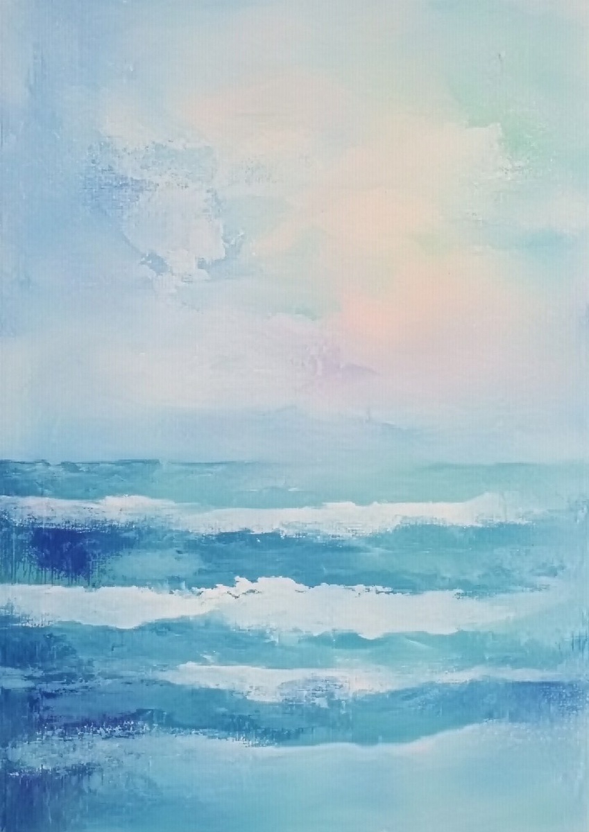 Создано на основе запроса: Abstract ocean painting, Impressionist Style, Claude Monet, oil painting, pastel colours