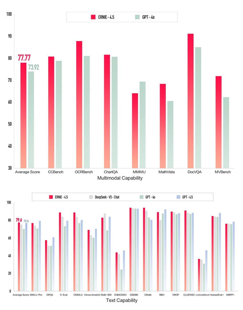 🚀 Big news in the AI world! Baidu just dropped their own models that rival GPT-4.5 for a whopping 1% of the price! 🎉 They launched TWO models that are making waves: ⭐️ **Ernie 4.5**: This multimodal champ not only outshines GPT-4.5 on several metrics but can also analyze images, charts, documents, and even audio. And get this—it costs 100x less! 💰 💵 **OpenAI Pricing**: Input $75 / 1M, Output $150 / 1M 💵 **Baidu Pricing**: Input $0.55 / 1M, Output $2.20 / 1M ⭐️ **Ernie X1**: Think DeepSeek R1 but at half the price! Input just $0.28 / 1M and output $1.10 / 1M. And the cherry on top? Ernie 4.5 is FREE to use in chat right now! 💬 X1 is coming soon too—don’t miss out! Try it here: yiyan.baidu.com 🌐
