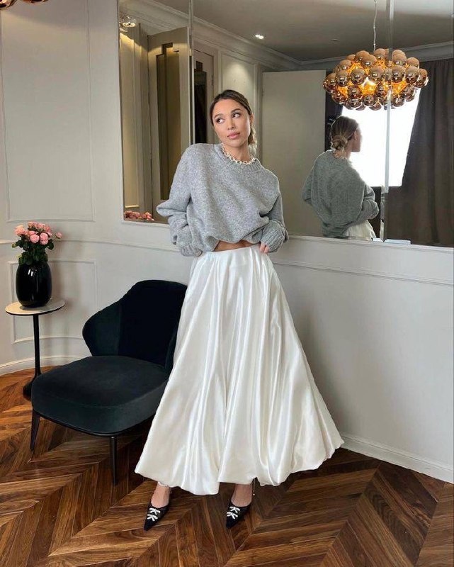 Юбка-баллон Эта юбка идеальна как для вечерних, так и для кэжуал образов, добавляя им утонченность и смелость. Она создает эффектный и элегантный силуэт, который невозможно не заметить! Актуальны как модели в длине мини, так и миди, что делает юбку универсальной для любых случаев. Юбка-баллон прекрасно сочетается с приталенными топами, водолазками, короткими жакетами и кардиганами. Эти элементы уравновешивают объем и создают пропорциональный силуэт, подчеркивая вашу индивидуальность. Образы для вдохновения ⤴️ #луктайм_от_анны #вдохновение #юбки