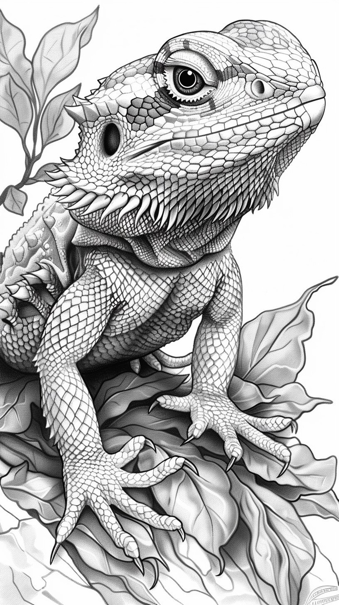 Создано на основе запроса: bearded dragon, simple vector, line art, cute smiling bearded dragon lizard, c 300