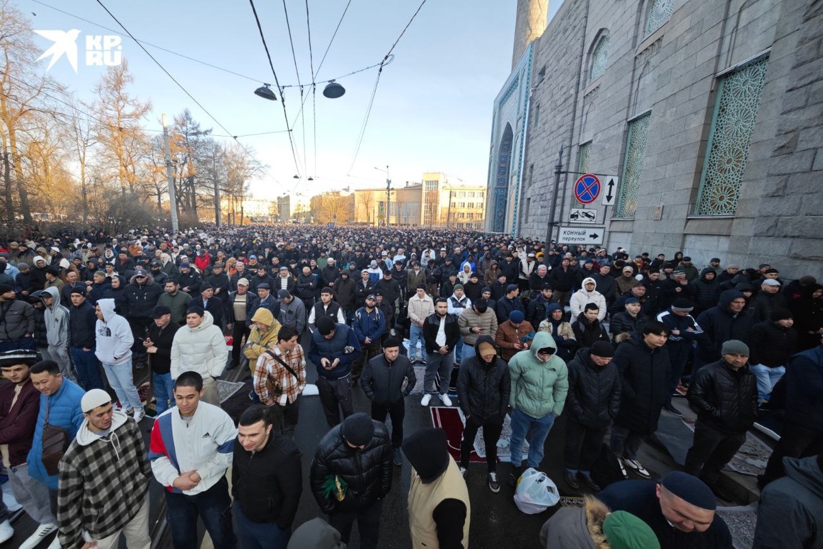 Десятки тысяч мусульман пришли на молитву к соборной мечети на Петроградской стороне. Сегодня празднуют Ураза-байрам. По опыту прошлых лет, число верующих может превысить 250 тысяч человек.