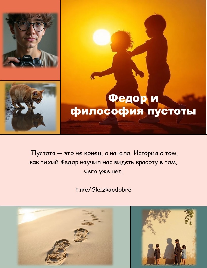 История о том, как тихий человек научил других видеть невидимое. Знакомьтесь, Федор. Он не фотограф, он — философ с фотоаппаратом. Он снимает то, чего нет: тени, отражения, пустые скамейки. Его выставка 'Пустота, которая говорит' взорвала мозг всем соседям. Почему? Потому что Федор показал, что самое важное — это то, чего уже нет. А ещё он доказал, что даже пустая тарелка может быть искусством (особенно если на ней остались крошки от пирога).