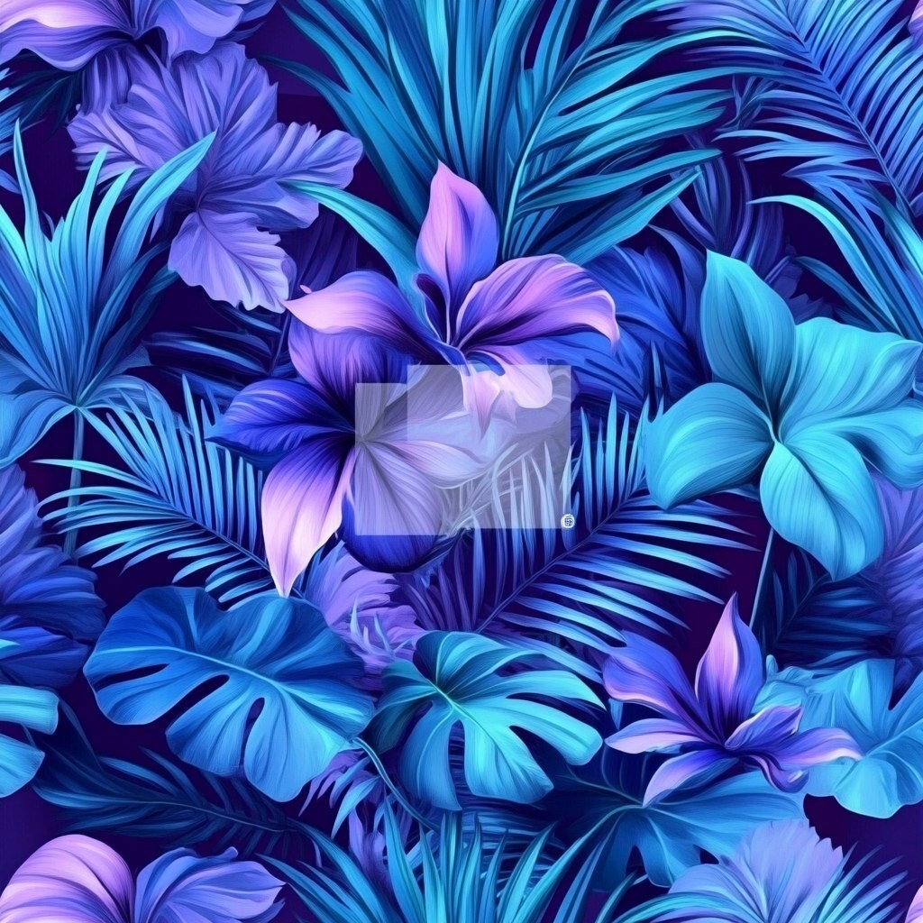 Создано на основе запроса: seamless large tropical floral pattern, electric blue and lilac color scheme