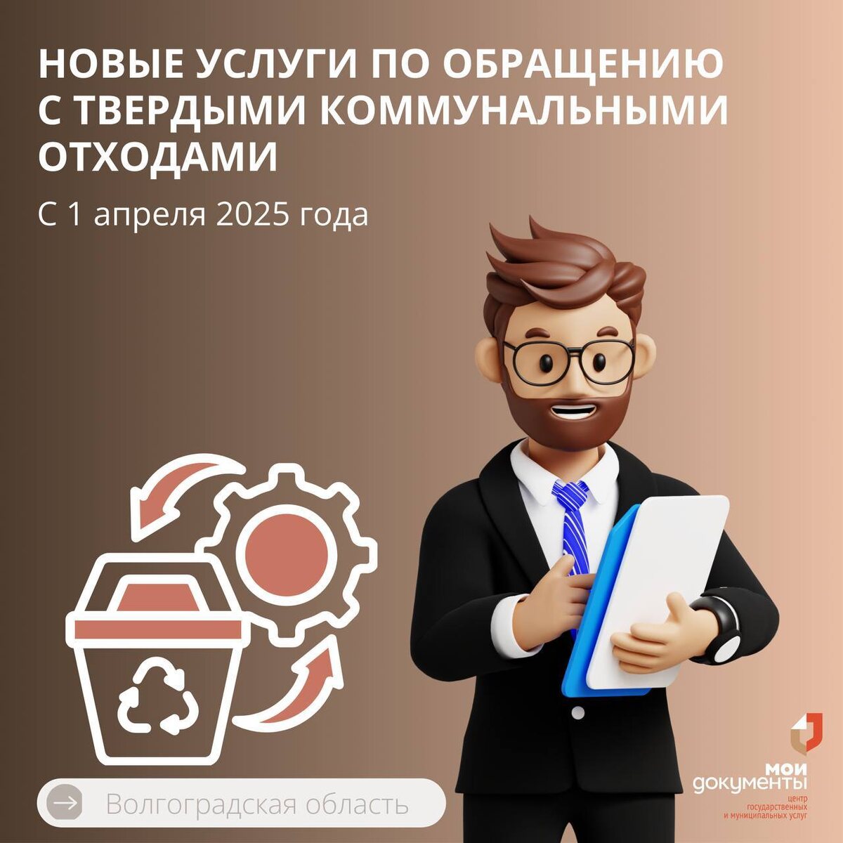 🔍 Важное объявление для жителей Волгоградской области! С 1 апреля 2025 года в МФЦ начинает предоставляться новый спектр услуг по обращению с твердыми коммунальными отходами (ТКО)! ❓Что можно будет сделать в МФЦ: ✅ Заключить договор на услугу “Обращение с ТКО” (для юрлиц и ИП) ✅Открыть лицевой счет на услугу “Обращение с ТКО” (для физлиц) ✅Оформить перерасчет платы за ТКО при временном отсутствии по месту регистрации (для физлиц) ✅Изменить данные в договоре ТКО (количество прописанных, ФИО)
