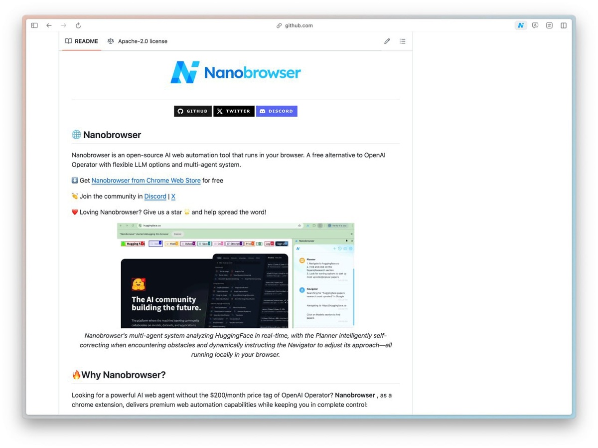 Nanobrowser можно скачать с Гитхаба, после чего в настройках расширения потребуется добавить API от любой LLM. Есть бесплатный вариант от Google.
